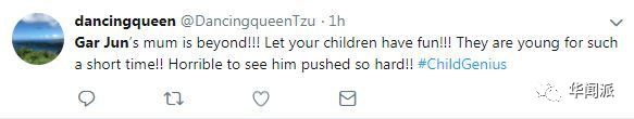 其中一条推特写道:“家俊的妈妈太棒了!让你的孩子玩得开心。他们年轻的时间这么短!!看到他被推得这么用力太可怕了!”