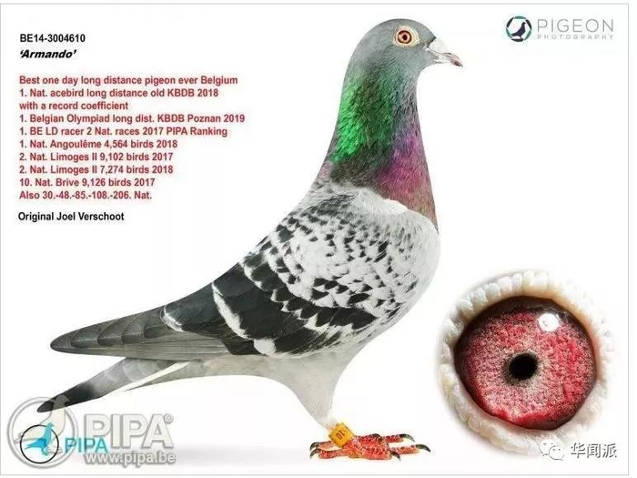 这只被以天价买下的赛鸽阿曼多由比利时人福豪斯特(Joël Verschoot)饲养,福豪斯特表示,阿曼多↓↓是2017和2018年比利时最顶尖的鸽子,更是2018年全欧最厉害的长飞选手,拥有绝佳的方向感和侧翼力量,被称为鸽界的“刘易斯·汉密尔顿”(Lewis Hamilton,英国人,五次F1赛车比赛的世界冠军)。