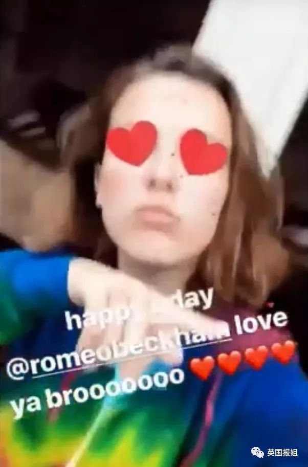 她还曾对罗密欧送上生日祝福,一连串的爱心,甚至双眼都是桃心。
