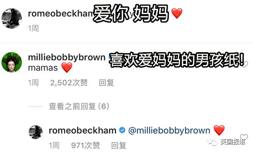 也经常评论罗密欧的ins。罗密欧发和妈妈的合影,评论区都能冒粉红泡泡……