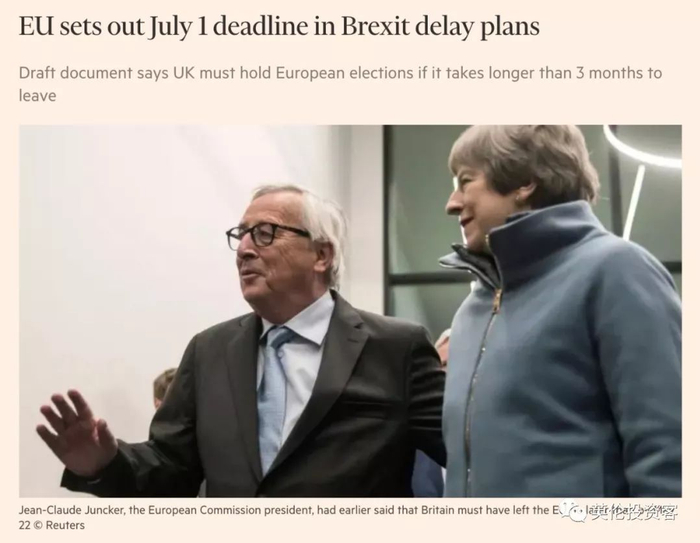 金融时报:欧盟给出延迟脱欧的最后期限为7月1日