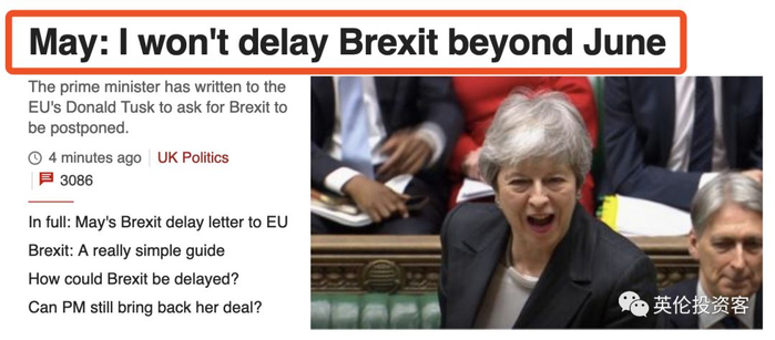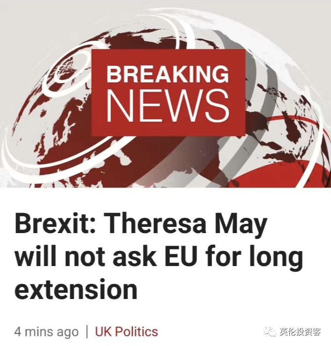 BBC突发新闻:特蕾莎·梅否决长期推迟脱欧,脱欧只延3个月