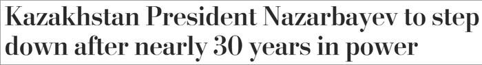 ▲ 3月19日,被称为“政坛常青树”的哈萨克斯坦总统纳扎尔巴耶夫突然宣布辞去总统职务。纳扎尔巴耶夫表示,辞去总统职务后,他将继续担任哈国家安全委员会主席,执政党“祖国之光”人民民主党主席和宪法委员会成员。