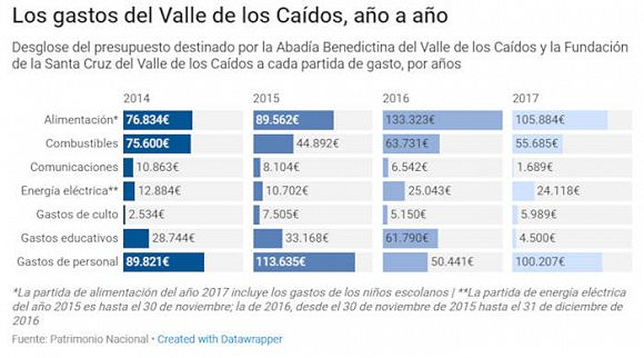 目前烈士谷的开销仍由西班牙财政负责,2017年的支出总计接近30万欧元。图源:Fuente