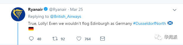 瑞安还是不肯罢休,回复道:“真的,不过就算是我们,也不会把爱丁堡当成德国杜塞尔多夫飞过去。”(你们真是够了)