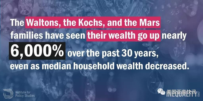 1982年,这三个家族的财富总和为22.2亿美元,相当于2018年的75.6亿美元。而2018年,这三个家族的实际财富总和为3487亿美元,经通胀因素调整后增长了近6000%。与其形成鲜明对比的是,同期美国家庭财富中值下降了3%。