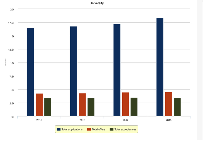 (剑桥大学历年录取比例。https://www.undergraduate.study.cam.ac.uk/apply/statistics)
