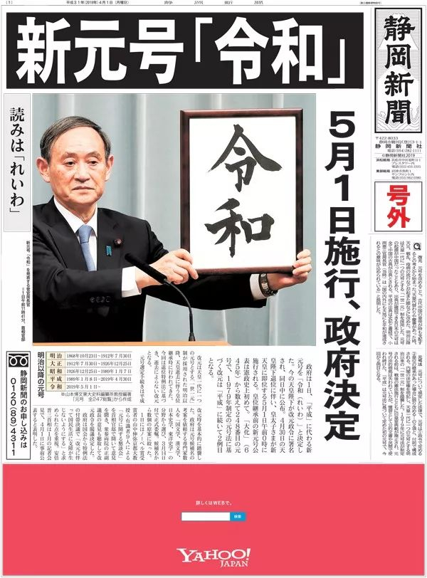 根据《朝日新闻》报道,1日上午,日本内阁官房长官菅义伟公布了新的年号“令和”。从公元645年的“大化”开始,日本的年号一直都是从中国古代典籍中查找使用,而这一次的“令和”则是首次从日本古代典籍中找出的。日本首相安倍晋三在当天中午的记者会上解释称,“令和”来自日本最古老的诗歌集《万叶集》中的“初春令月,气淑风和,梅披镜前之粉,兰薰佩后之香”。根据日本政府的日程安排,新的年号将于5月1日正式使用,而这也意味着长达30年的平成时代即将结束。
