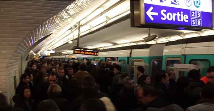 上下班高峰期,巴黎地铁经常会出现因为人太多而车门关不上的情况。