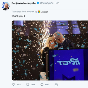 内塔尼亚胡在社交网站发文,感谢支持者