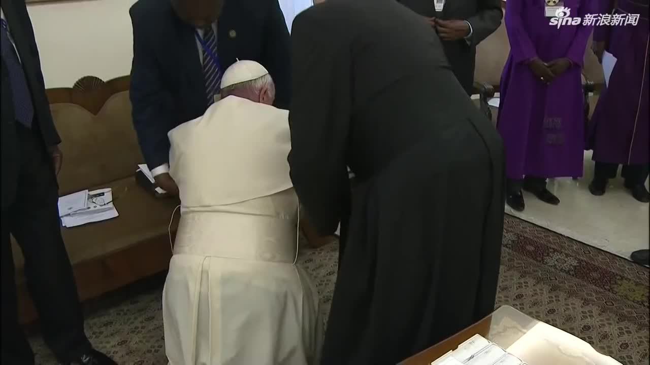 教皇亲吻南苏丹领导人鞋子 “跪求”别再有战争