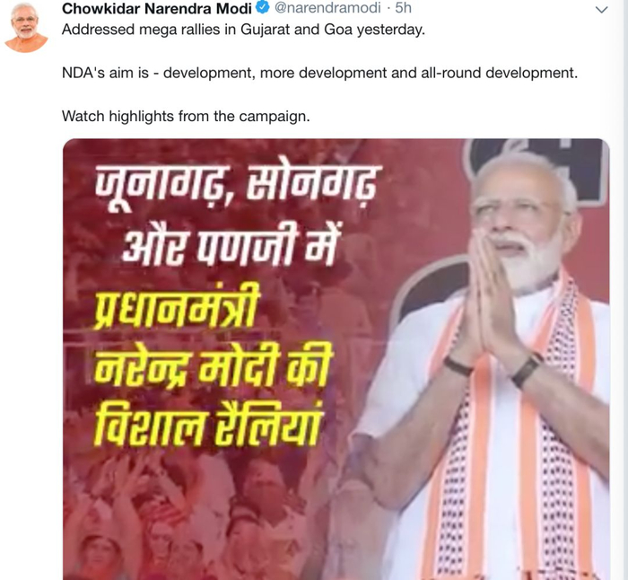 随后,莫迪还发了一条竞选总结视频,称“全国民主联盟的目标是:发展,更多的发展,全方位的发展”。
