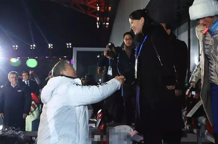 文在寅当然要抓住这个机会。欢呼声之中,他特意转过身去与金与正热情握手。