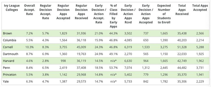 常青藤院校2022届学生录取率(数据来源:Ivycoach)