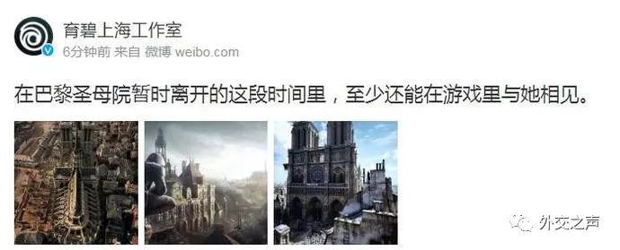 同时,育碧上海工作室也表示:“在巴黎圣母院暂时离开的这段时间里,至少还能在游戏里与她相见。”