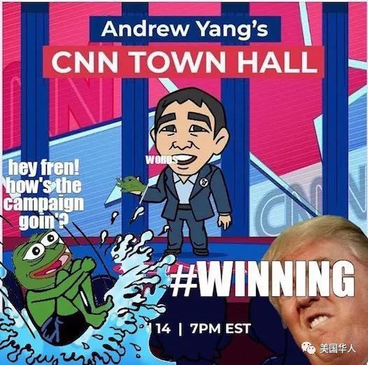 CNN于4月14日为杨安泽举行了一个民主党初选市政厅座谈会,现场反应极佳,人气爆棚。(图片来自杨安泽竞选团队推文)