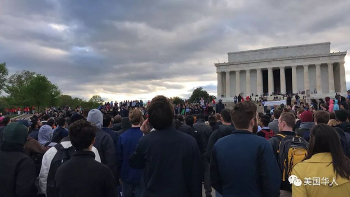 4月15日,华盛顿林肯纪念堂前,杨安泽在CNN市政厅座谈会后的第一个竞选集会。(图片来自Yang Gang微信群)