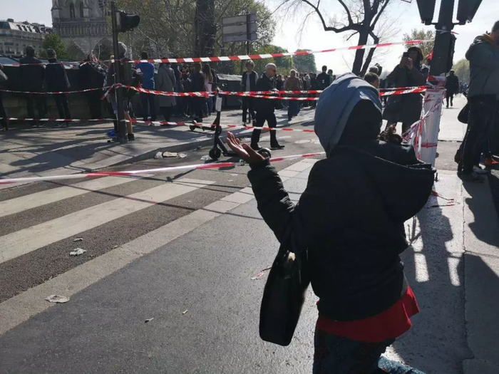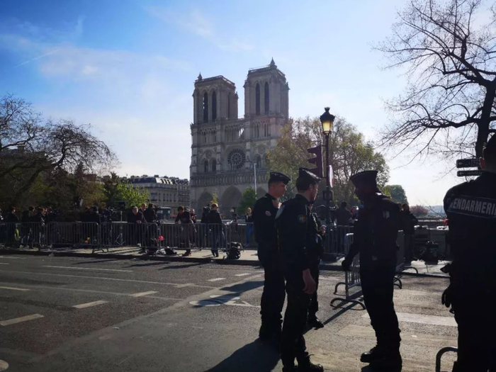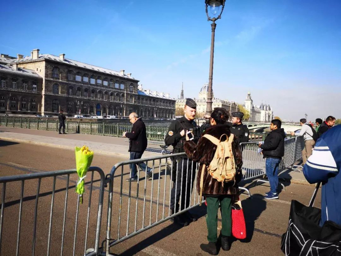 路途其实并不顺利,Notre Dame-Saint Michel这个站早已被封锁,沿途通往圣母院的几座桥也不再放普通人同行,军警守住各个通往圣母院的关口,西岱岛气氛凝重。