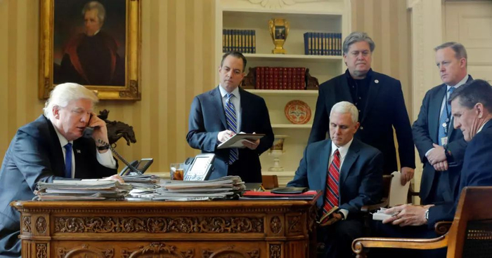 普里巴斯几乎是连拖带拉地把塞申斯带回了西厢,这时,副总统彭斯和班农也赶了过来,一同劝留塞申斯。