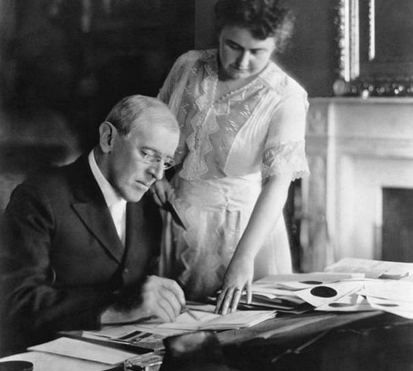 当时的第一夫人伊迪丝•威尔逊(Edith Wilson)成了总统不可或缺的助手,不少人认为她才是椭圆办公室的实际主人。