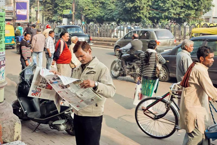 在印度,你会随时随地邂逅这些报纸的读者,无论身份、无论肤色、无论种性。