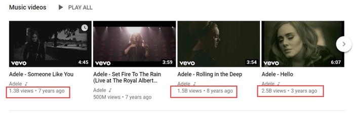 在油管上,阿黛尔仅靠《Someone Like You》、《Rolling in the Deep》和《Hello》,MV点击量就累计超过53亿。
