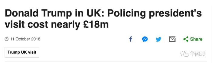 尽管特朗普当时并没有真的来到伦敦市中心,但据BBC报道,就为了他在英国期间四天的安保,英国警察就花费了将近1800万英镑。近万名警员从全英各地调来,其中很多人需要取消自己的假期,延长值班时间,这也引起了普通纳税人的不满。