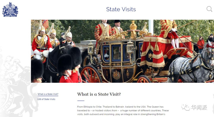 那么,英国的国事访问(State Visits)是什么样的?根据英国王室官网上对于“国事访问”的解释,一般的“标配”大概是这样的。