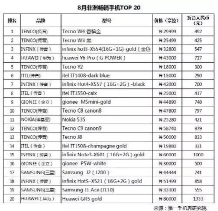 传音是一家成立于中国深圳的企业,在非洲最畅销的十款手机中,常年有7-8款是传音生产制造的。旗下三大手机品牌“TECNO、INFINX、ITEL”目前已扩大至电视机等品类。