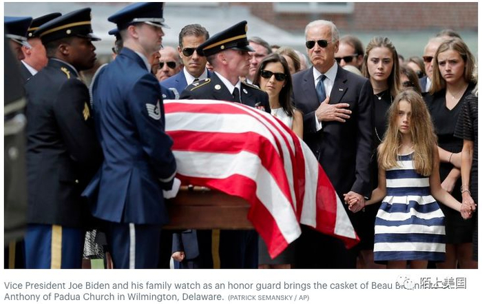 如此舐犊情深,当厄运再次袭来,人们不禁要仰天长叹命运为何如此不公。原来就在2015年五月,拜登的长子伯欧(Beau), 民主党后起之秀,特拉华州长的热门人选,当年在车祸惨剧中大难不死,却没有等来颐享天年的后福,在46岁的壮年死于脑癌。