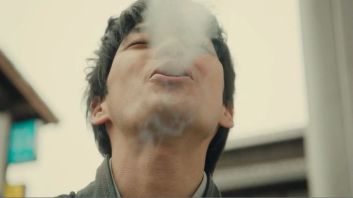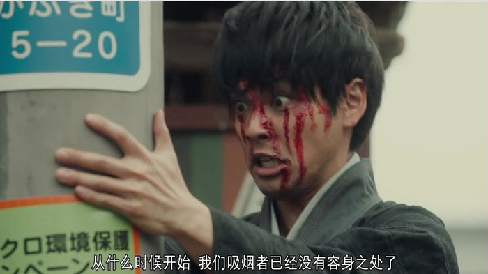 不能抽烟的土方只好出来抽