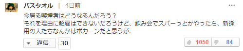 那有抽烟习惯的现员工怎么办呢?不能以抽烟为理由解雇人家吧,之后如果在酒会上抽烟,新员工肯定会有异议吧。