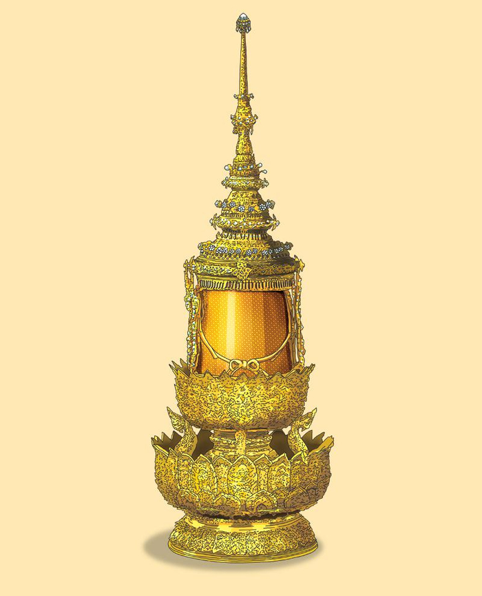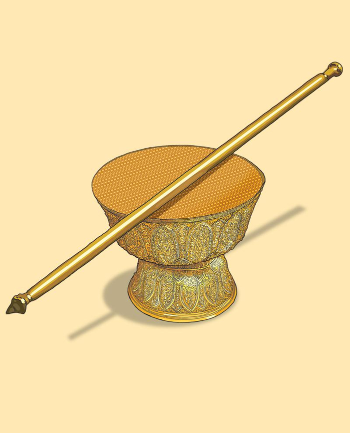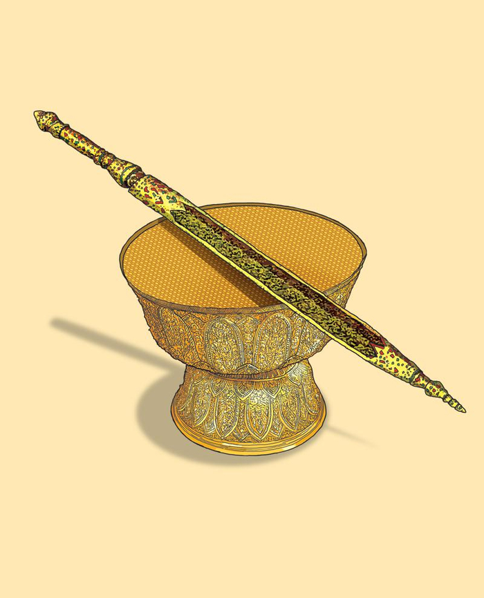 在今日的加冕典礼中,哇集拉隆功将继承泰国王室的5大“神器”:皇冠、王剑、王杖、王扇和拂尘以及王履。泰国媒体记者在社交媒体上放出神器的图片。