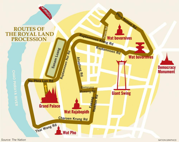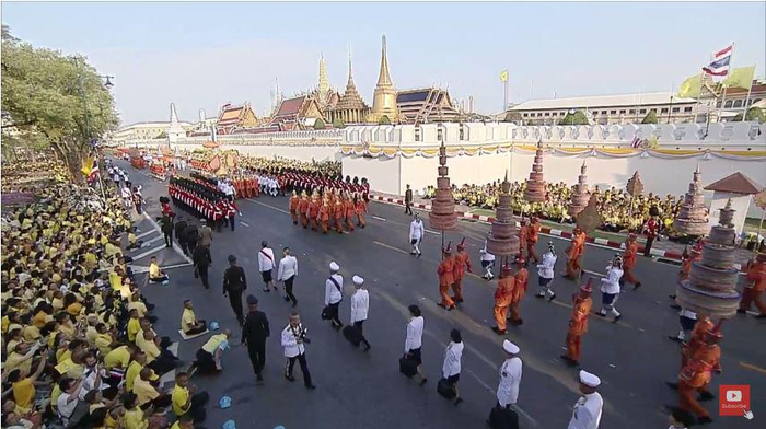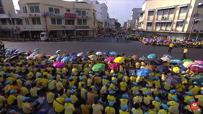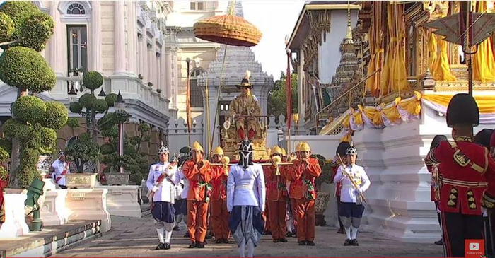 5日16点30分,泰国国王将乘坐轿子绕城环游,接受国民的祝福。