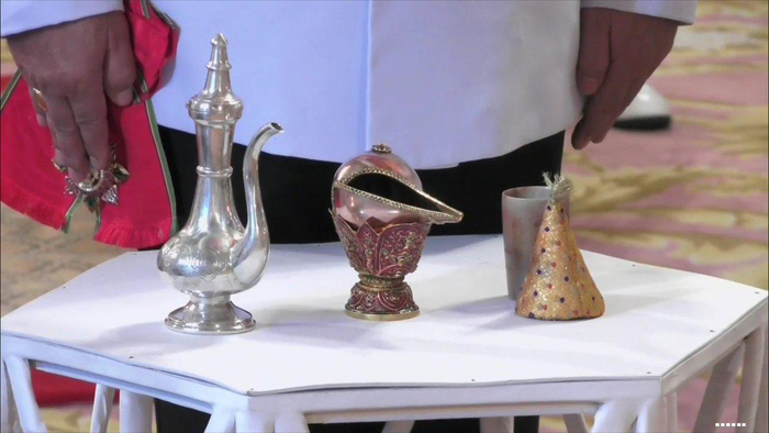 此次加冕仪式将持续3天,4日的加冕仪式是重中之重,今日的仪式共包括净化仪式;加冕王冠仪式;宣告仪式;祭祖仪式。