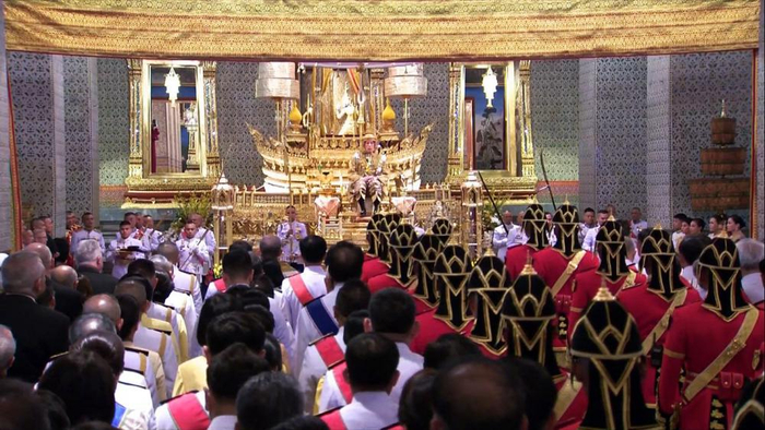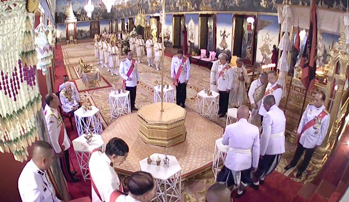 结束宗教祈福仪式后,泰国国王哇集拉隆功加冕仪式结束。