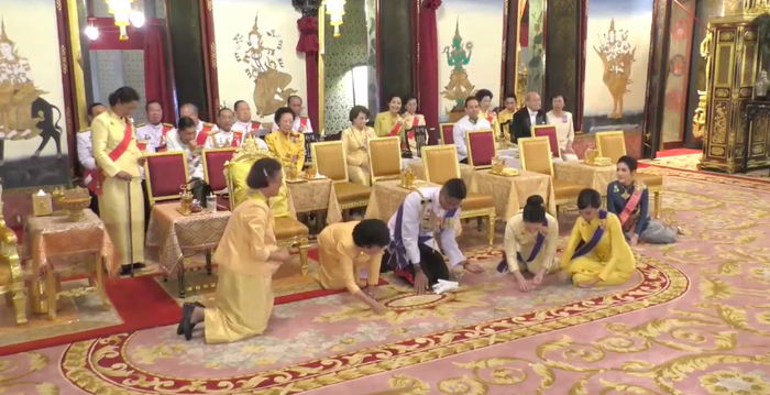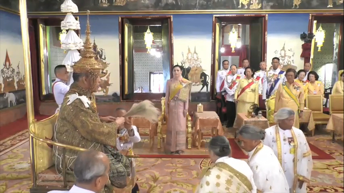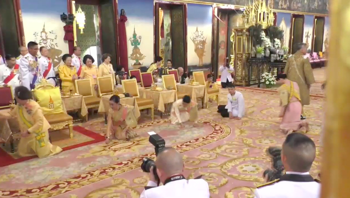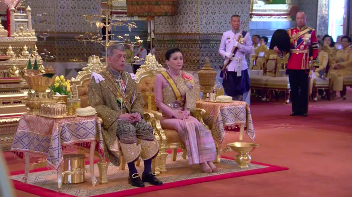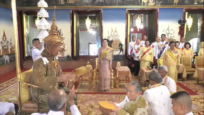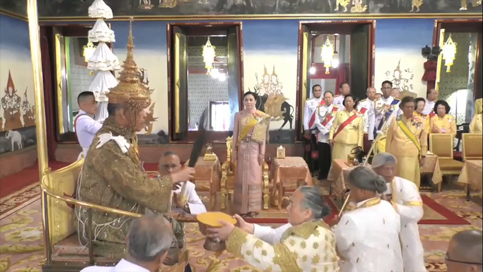 哇集拉隆功参加净化仪式时,一旁的皇室成员在观看,其中包括哇集拉隆功的新王后。