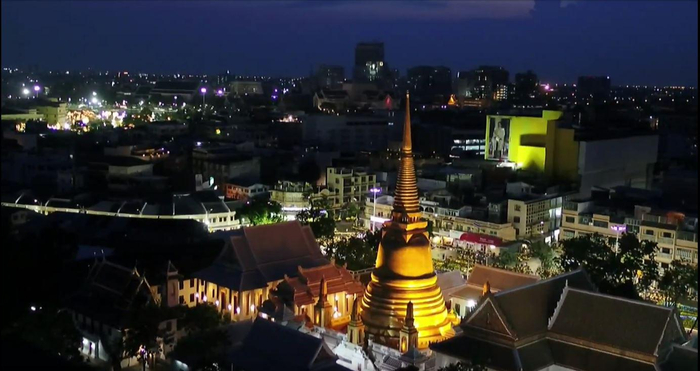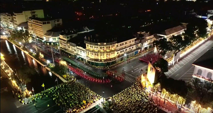夜幕早已降临,巡游仍在继续。全场近7公里的巡游,预计耗时4小时30分。国王哇集拉隆功巡游期间,前往僧王寺,完成加冕礼的一部分。