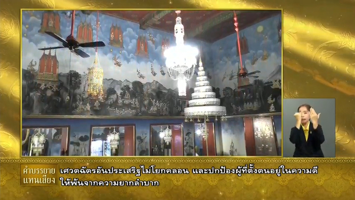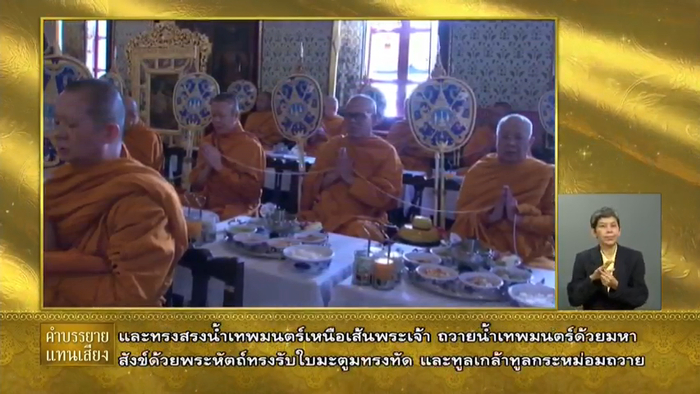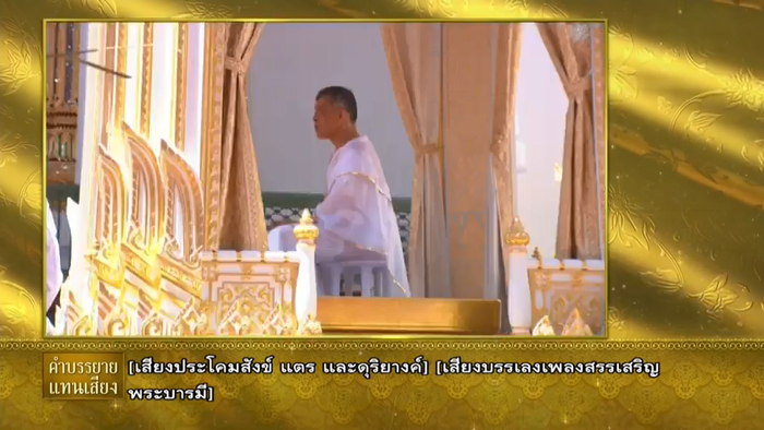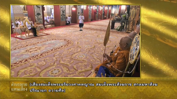 哇集拉隆功接过皇室“神器”,包括:皇冠、王剑、王杖、王扇和拂尘以及王履。同时多座寺庙也开始敲钟祈福。