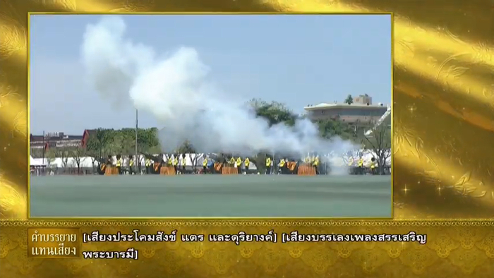 哇集拉隆功接受圣水净化,同时,皇室开始鸣礼炮和奏乐。
