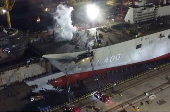 不过,紧接着新鲜事就来了。4月28日印度航空母舰刚刚失火,4月29日土耳其还在建的准航母阿纳多卢号也就遭遇了同样倒霉的结果。据环球网报道,阿纳多卢号29日夜间在造船厂内起火,具体地点是图兹拉塞代夫造船厂的干船坞,当时这艘满载排水量可达2.8万吨的大型战舰正在接受施工作业。原本阿纳多卢号计划在今年就正式下水,但突如其来的火情有可能会对工期造成不利影响。