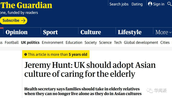 ▲《卫报》对杰里米·亨特老人关怀项目的报道