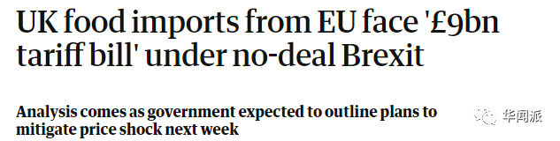 另英国《卫报》分析指出,如果英国“无协议脱欧”,英国从欧盟进口的食品将面临90亿英镑的关税账单。