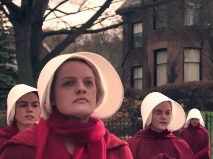 多年来,小说中描绘的侍女制服——白色硬壳帽以及血红长袍,时常成为女权运动抗议时的道具。
