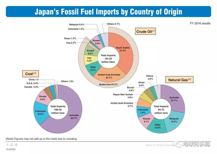 2016年的日本化石能源来源国结构