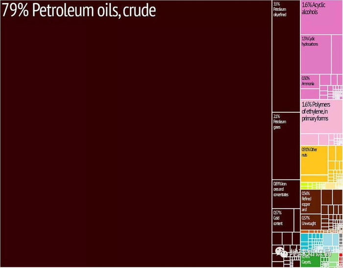 在原油这一项,中东国家占到压倒性的87%