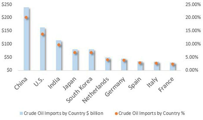 表3 中国和印度的主要石油供应国,2018年(占总量百分比)