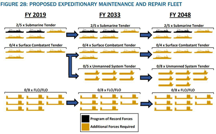 1、扩充潜艇补给船,增加新型水面补给船,以支撑远离海岸设施的分布式、长期作战;