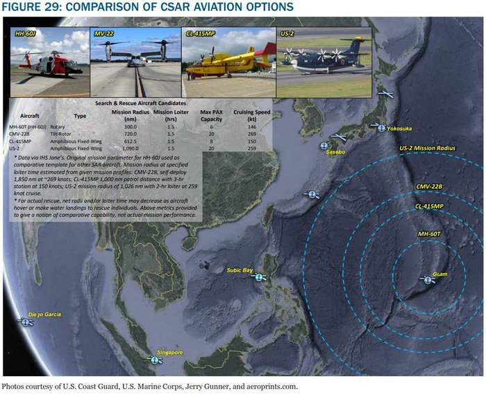 1、美国海军应发展可以满足战时高频、大量的搜索和救援需求的能力,包括采购新型远程救援平台,如CMV-22B、两栖US-2飞机及无人或少人的水面搜救船。