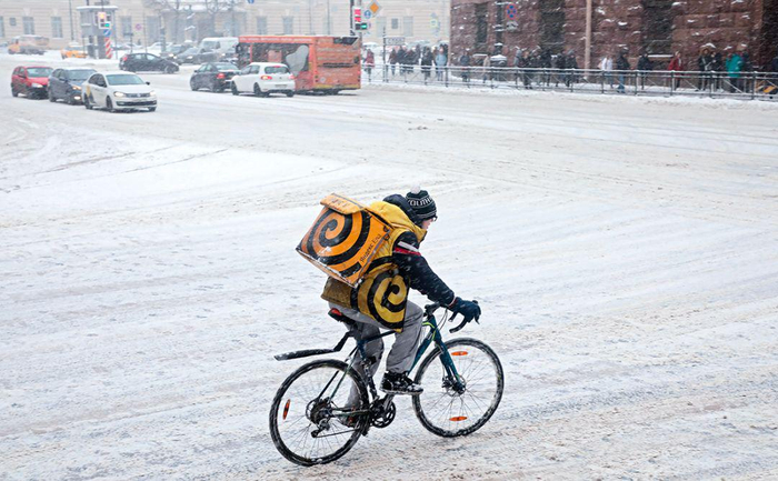 ●在风雪中骑行的Yandex.Eda外卖员 / 网络